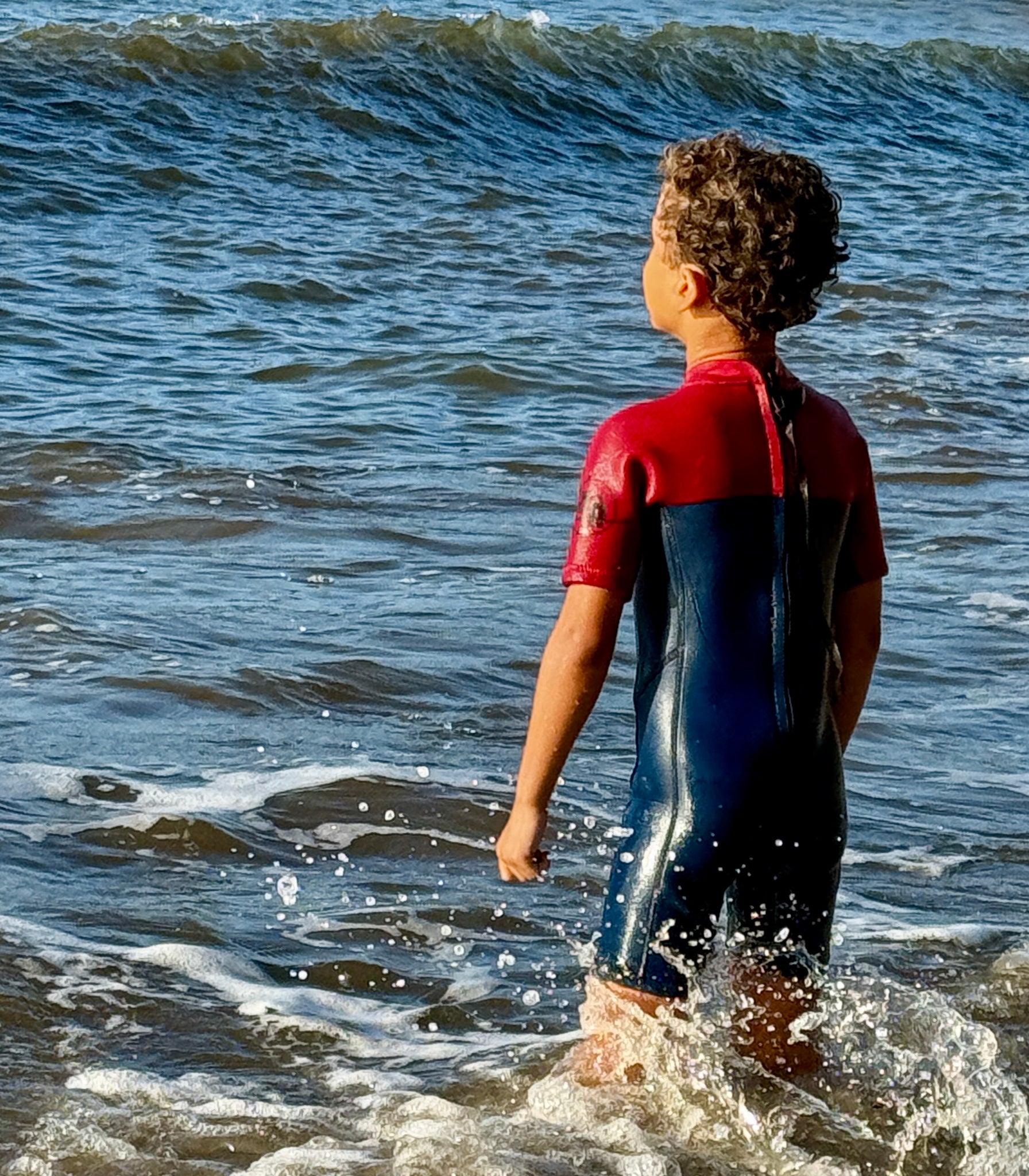 SIZING: see size chart and sizing reference photo for details. Our smallest size can fit babies as young as 3 months old for bigger babies (4-5 months on average), and we offer three separate sizes for children under two to provide the best possible fit during this highly varied and dynamic period of growth. If between sizes, size up (we’ve found that a little baggy fit doesn’t affect warmth or performance and offers room for the child to grow and wear the wetsuit longer!) -- if you have questions, feel free to message us here, on Instagram, or on Facebook.