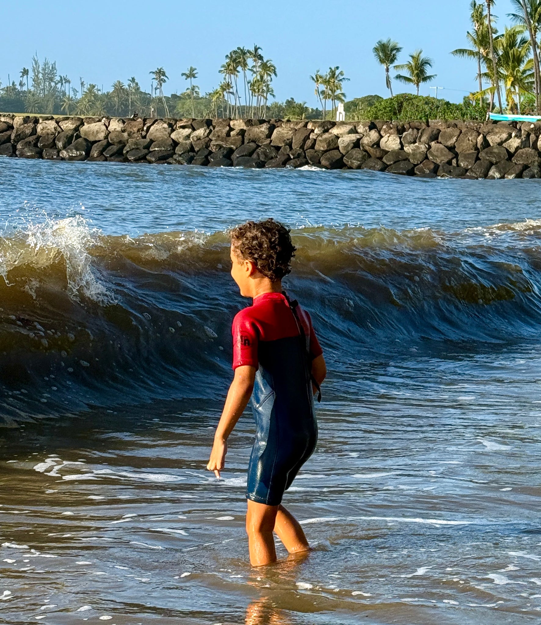 Hawaiian Supʻpaman is our hommage to the Braddah IZ song and the demigod that slowed the sun and pulled our islands from the sea. It's also our offering to our little ones that want to dress like Spiderman and Maui at the same time. Mischievous, marvelous, magical Maui...